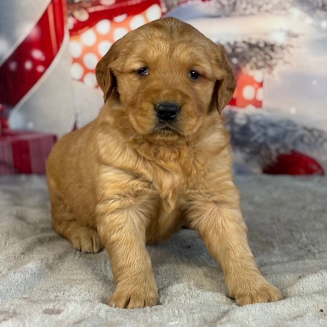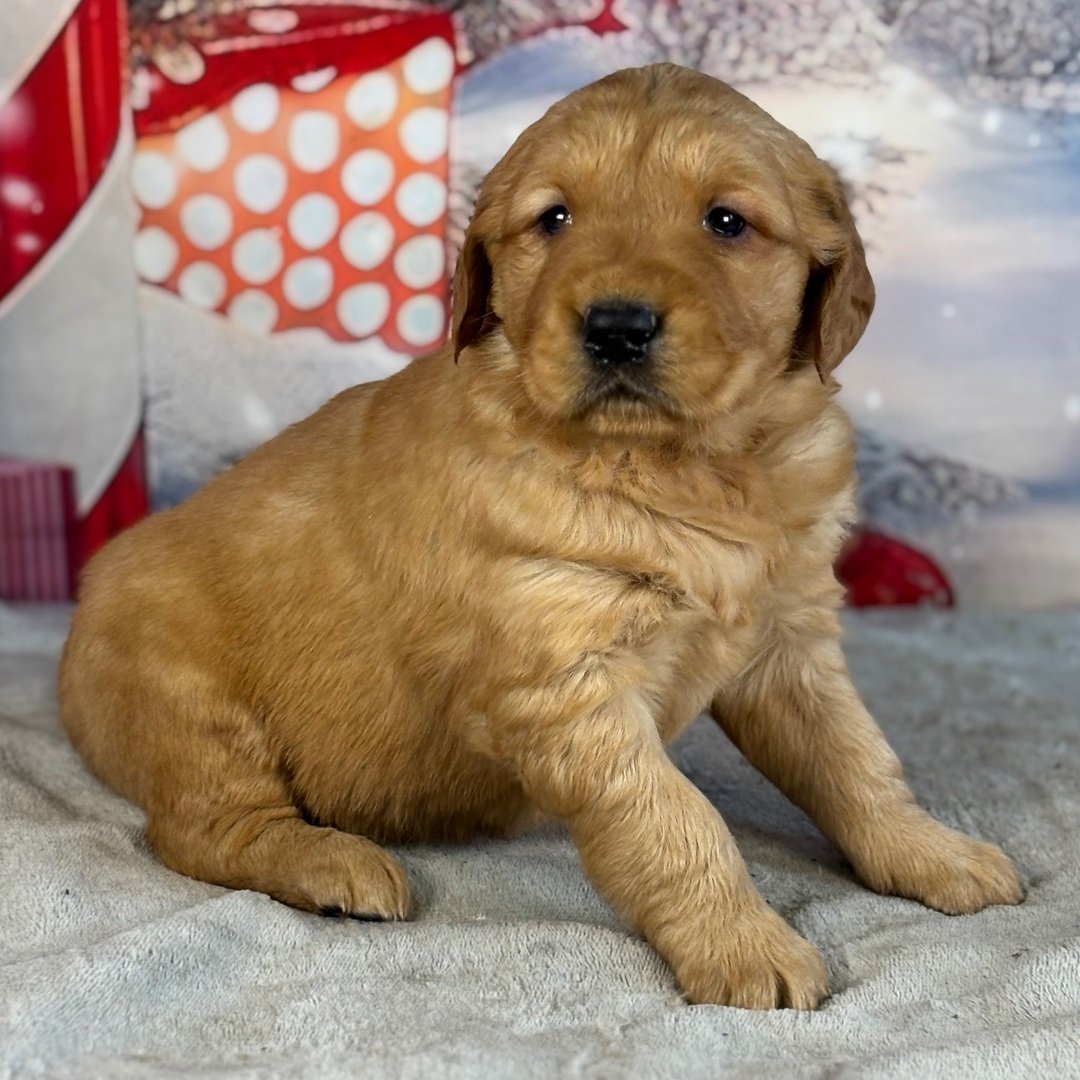 Hi, I’m Jane! I’m a 5-week-old female Golden Retriever with a beautiful golden coat. When I reach my adult size, I should weigh between 45–75 lbs. I’m ICA registered. I’m ready to be your best friend and cuddle buddy for life.
