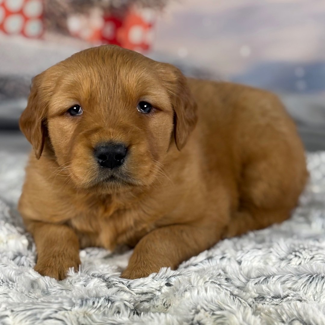 Hi, I’m Jokie! I’m a 5-week-old male Golden Retriever with a beautiful golden coat, once I’m grown enough to leave my litter. When I reach my adult size, I should weigh between 55–85 lbs. I’m ICA registered. My love for you will be as boundless as my puppy energy.