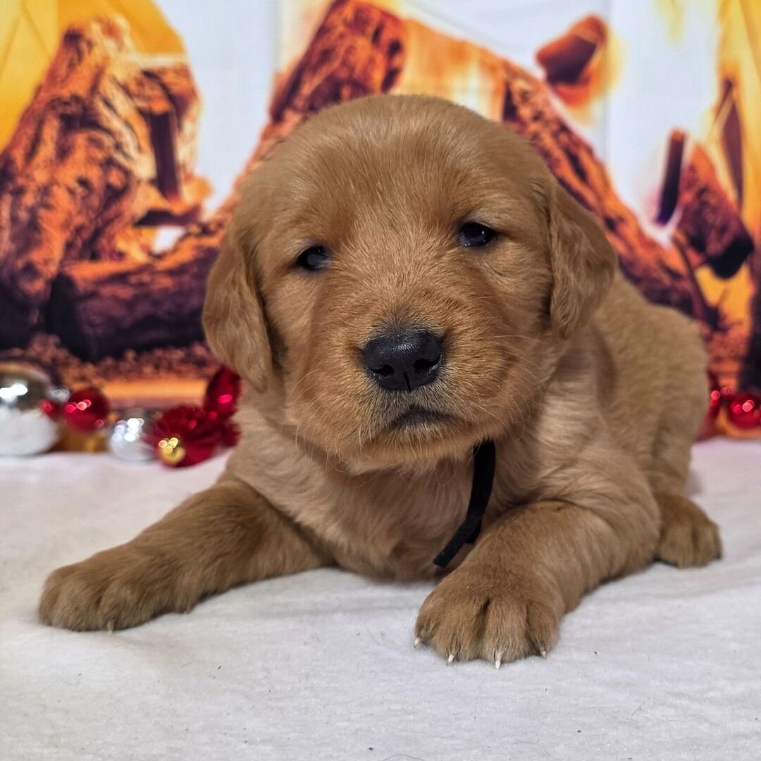 Hi, I’m Matthew! I’m a 6-week-old male Golden Retriever with a beautiful golden coat, born on November 17, which makes me a Scorpio sign. I’ll be ready to go home to my forever family after January 12, once I’m grown enough to leave my litter. When I reach my adult size, I should weigh between 55–85 lbs. I’m AKC registered. My playful nature will keep you smiling all day long.
