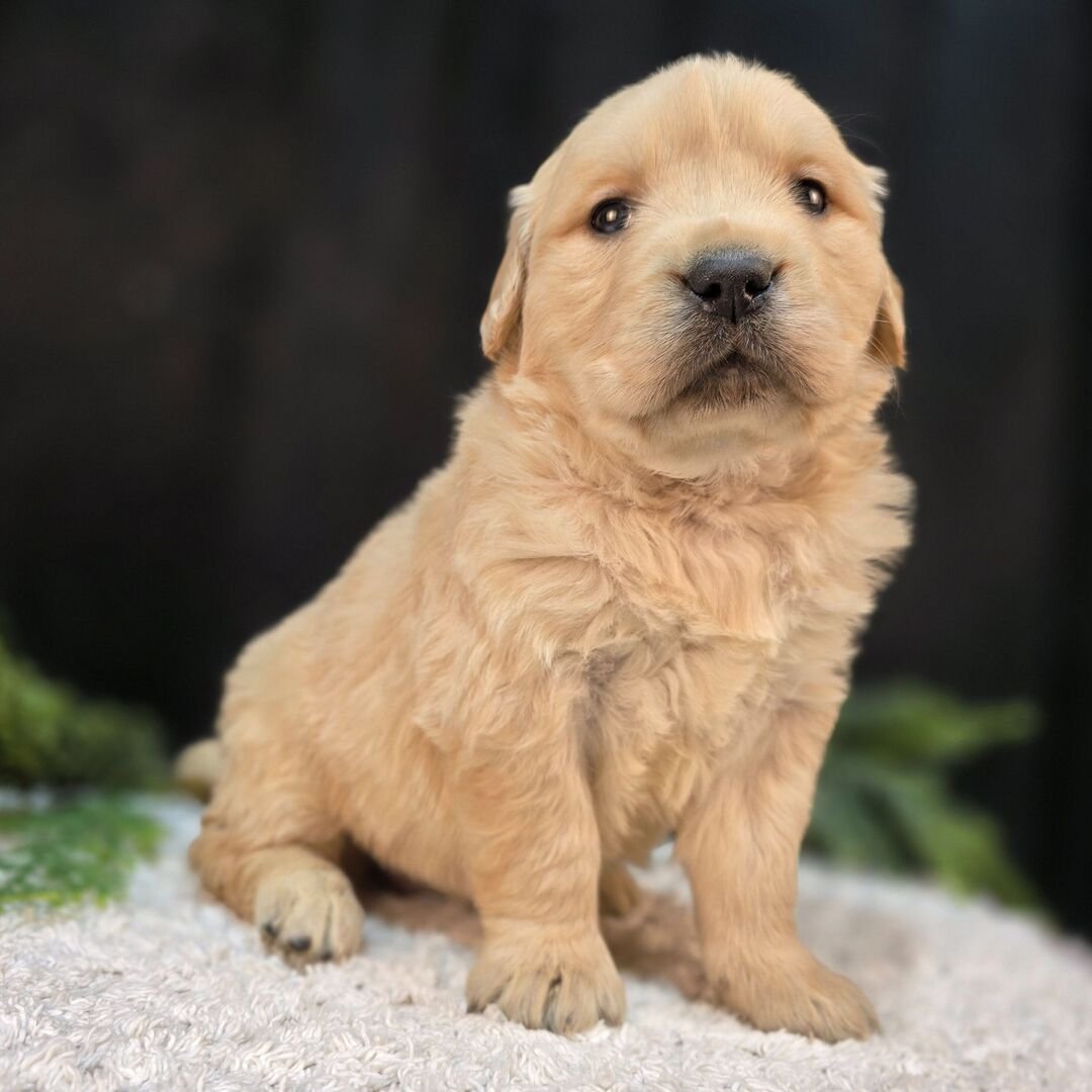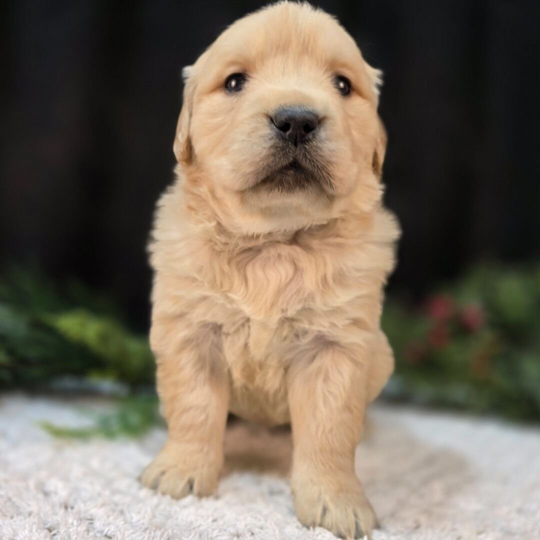 Hi, I’m Rebecca! I’m a 5-week-old female Golden Retriever with a beautiful golden coat. When I reach my adult size, I should weigh between 45–75 lbs. I’m AKC registered. I can’t wait to bring my puppy joy and cuddles into your home.